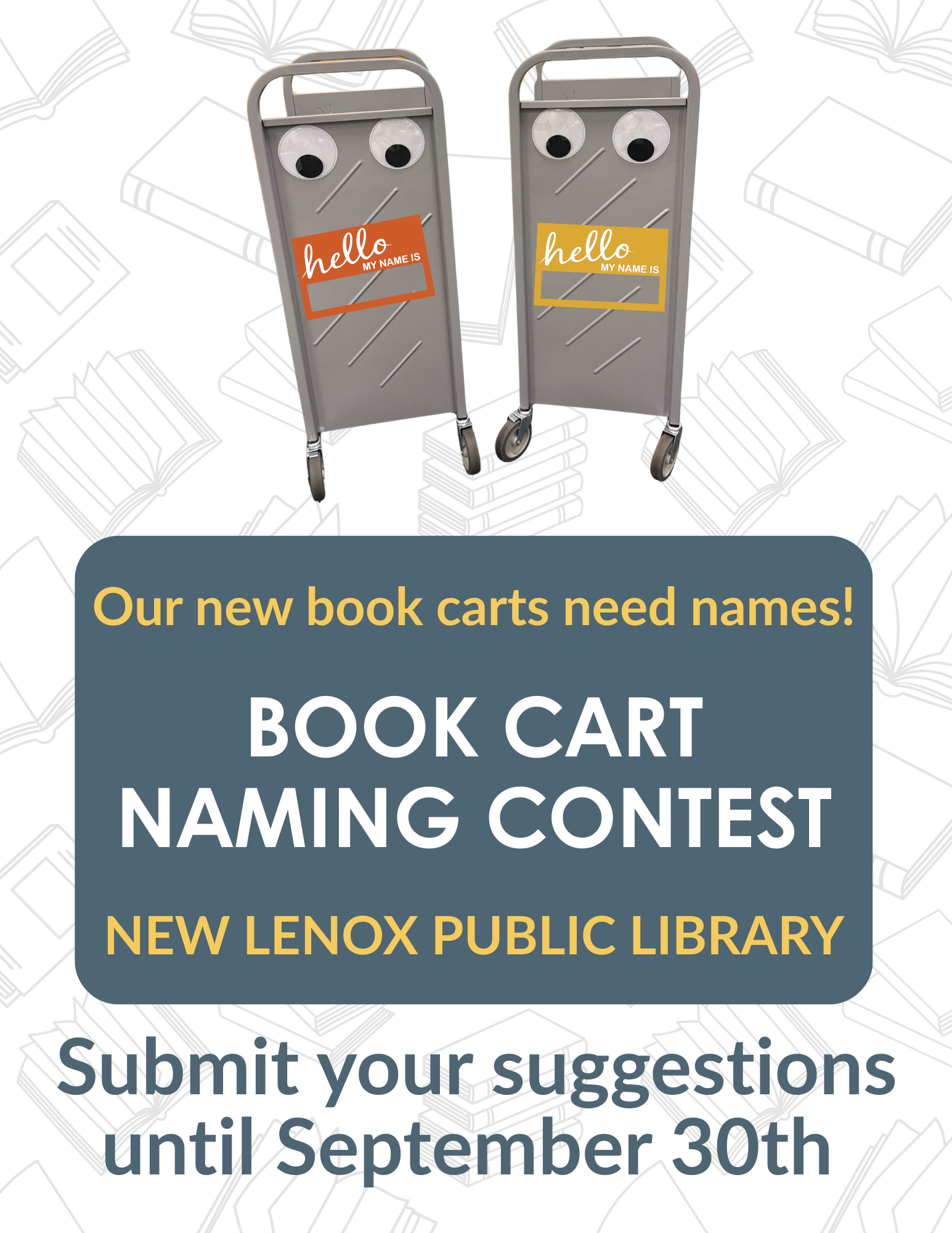 - Help us name our two new library book carts. Cast your votes until September 30th.