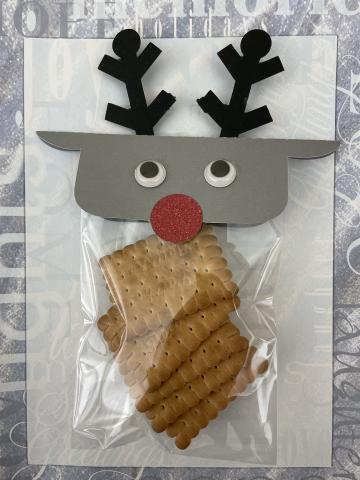 Have a thoughtful gift for someone? Add this cute reindeer to finish the top of a gift bag (included)!