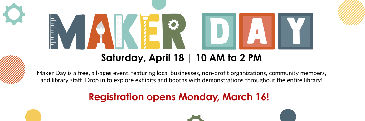 Calling all Makers: Maker Day is back! Get hands-on with all that the Library has to offer as we kick off National Library Week. Join us Saturday, April 18 from 10 AM to 2 PM!